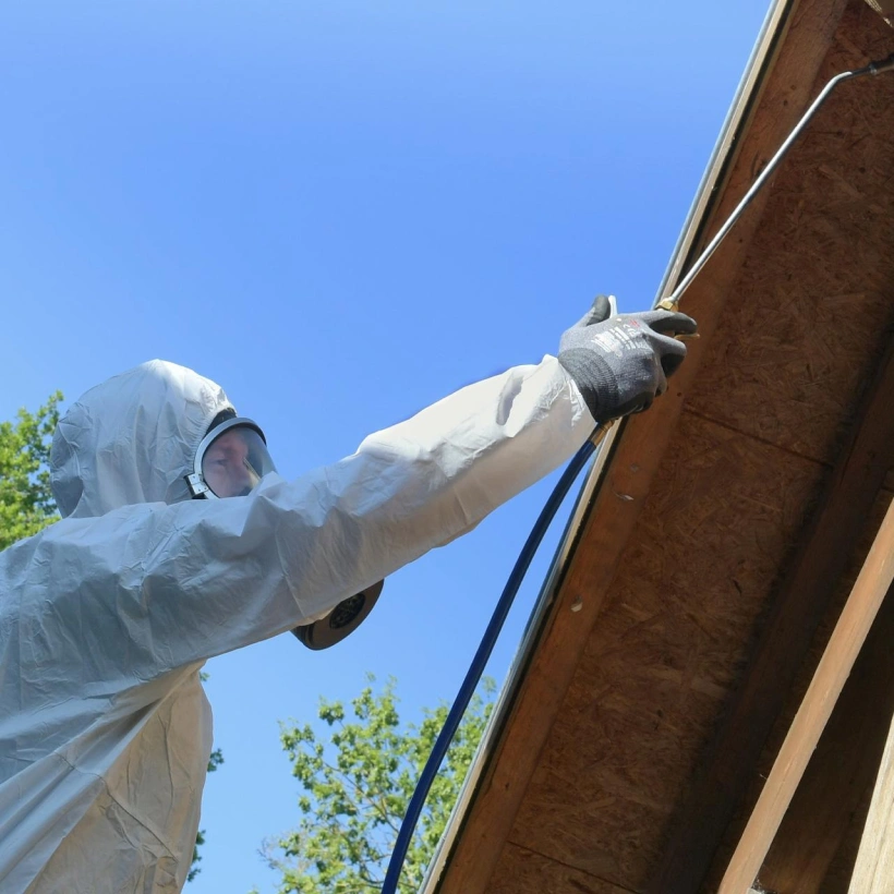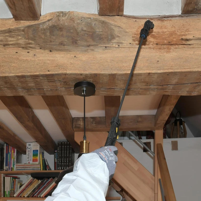 Action curative bloquant les insectes xylophages. Ce procédé préserve l'intégrité et la valeur de vos charpentes.
